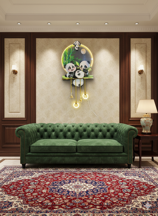 Panda Paradise: Metal Art with Hanging Lights & LED
