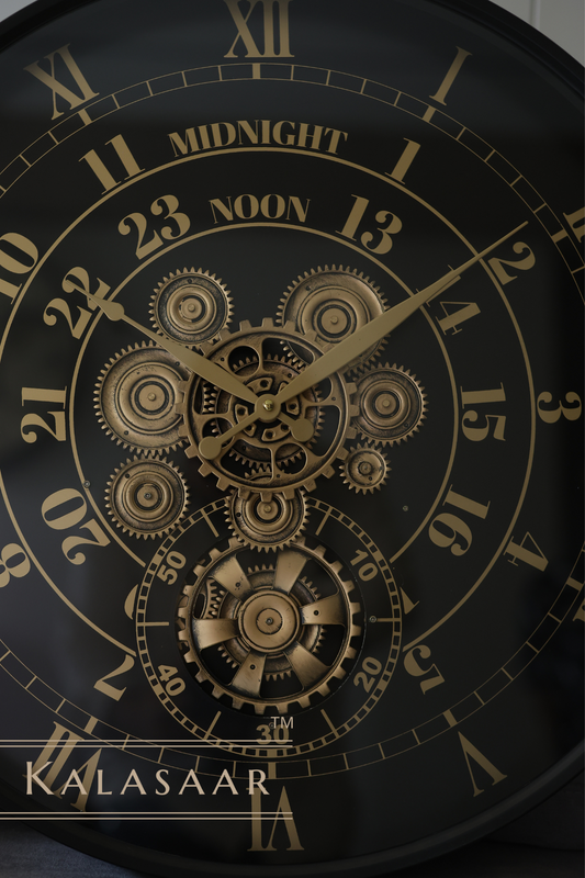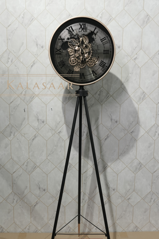 Kalasaar Luxe Tripod Gear Clock - Black & Gold Elegance