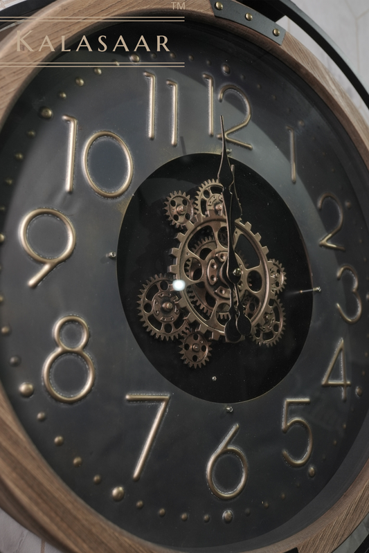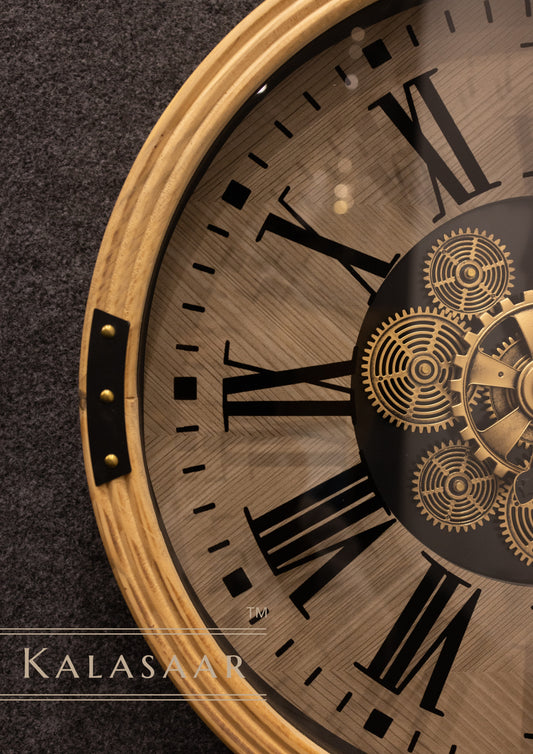 Premium Metal Gear Clock with Wooden Outer Body and Metal Guard