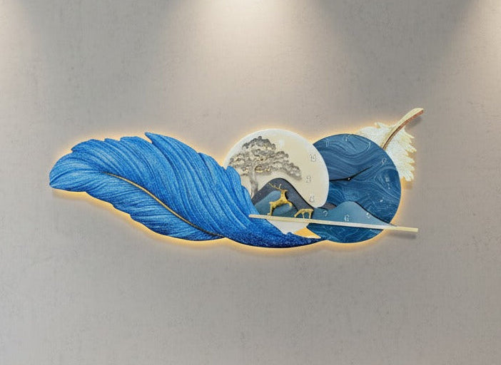 Lunar Serenity: LED Metal Wall Art with Nature Motifs