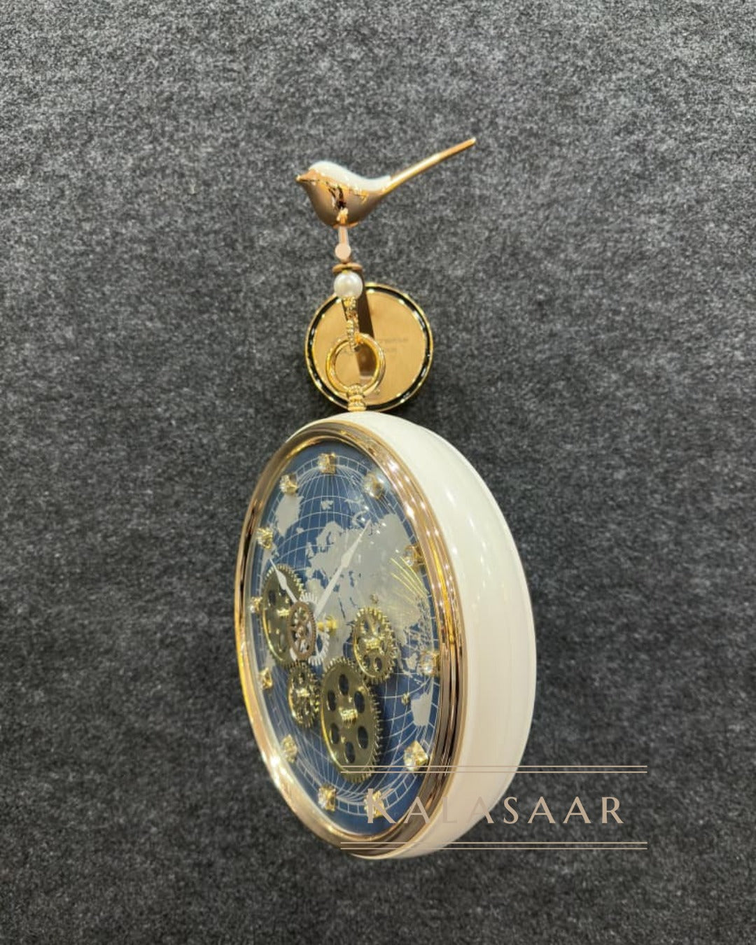 Premium Metal Gear Clock with Wooden Outer Body and Metal Guard