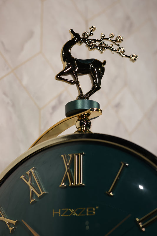 Elegant Double-Sided Wall Clock with Deer Top – Green