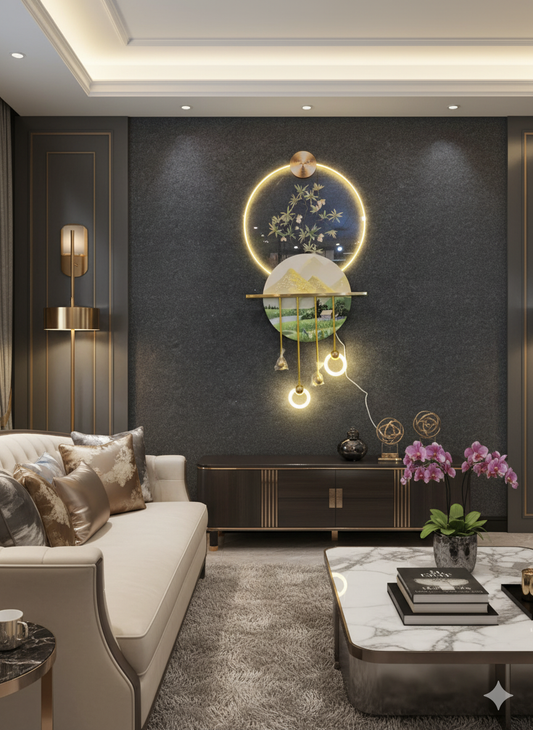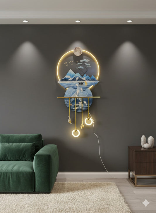Lunar Serenity: LED Metal Wall Art with Nature Motifs